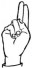 На ћирилици написано МИЛУН РАДОЈЕВ састоји се из 12 слова [?]. Исписано ћириличном једноручном азбуком за глувонеме:
